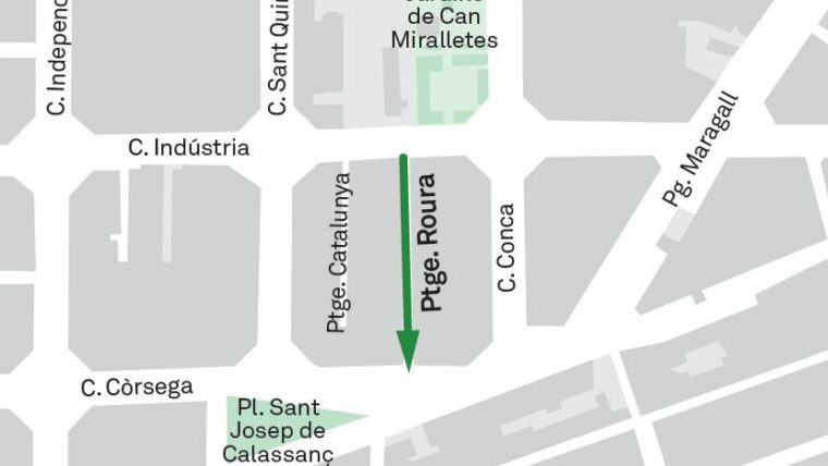 Des del dijous 18 de desembre és efectiu el canvi de sentit de circulació al passatge de Roura, que passa a tenir un únic sentit descendent, del carrer de la Indústria cap al carrer de Còrsega, és a dir, de muntanya a mar. La mesura té com a objectiu reduir el pas de vehicles i millorar la seguretat dels vianants en aquest vial del barri.