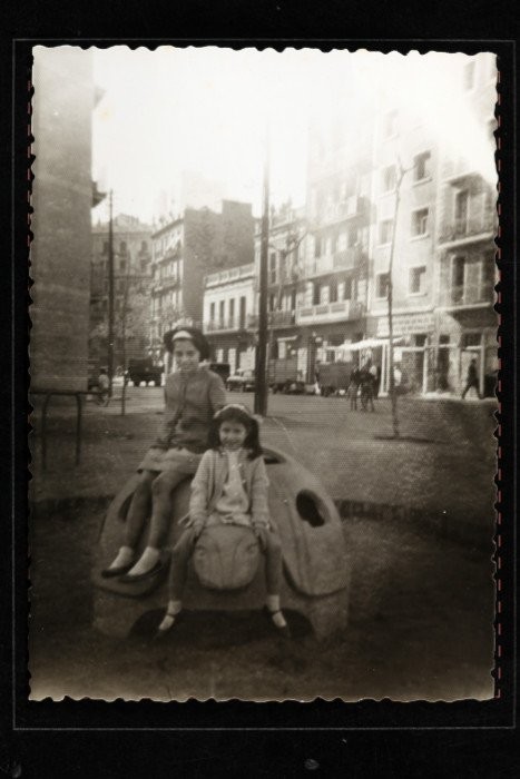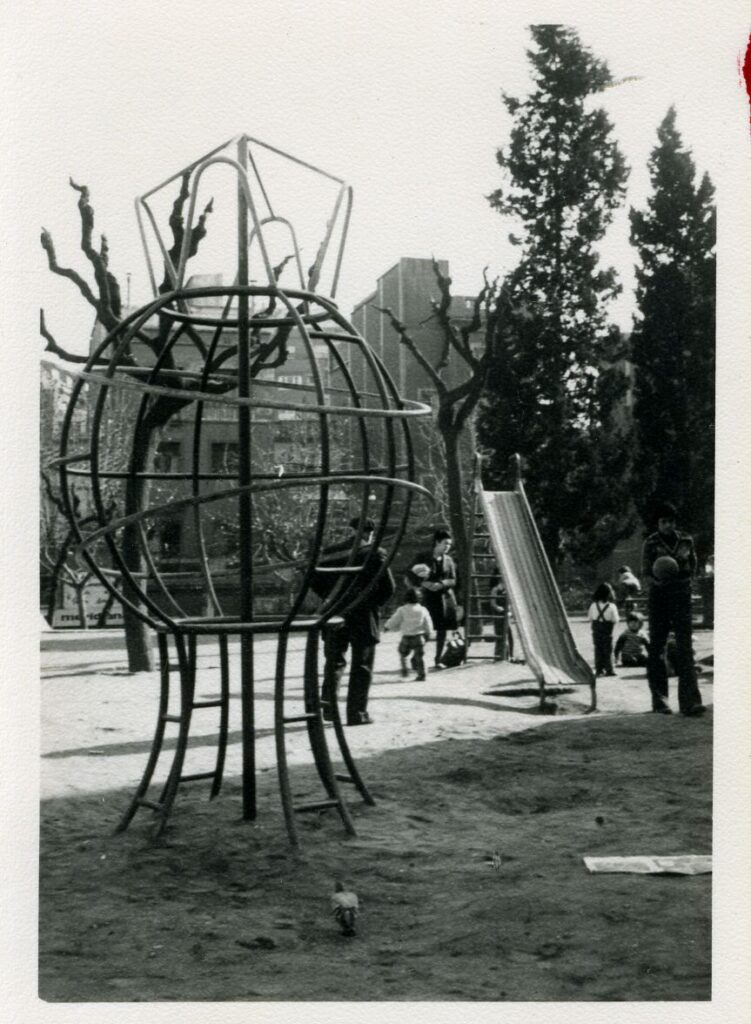 Fotografia de portada | Dues nenes jugant en una instal·lació a la plaça de les Tortugues, l’any 1964. Autoria desconeguda. Fons Pilar Bofarull Mallofré.