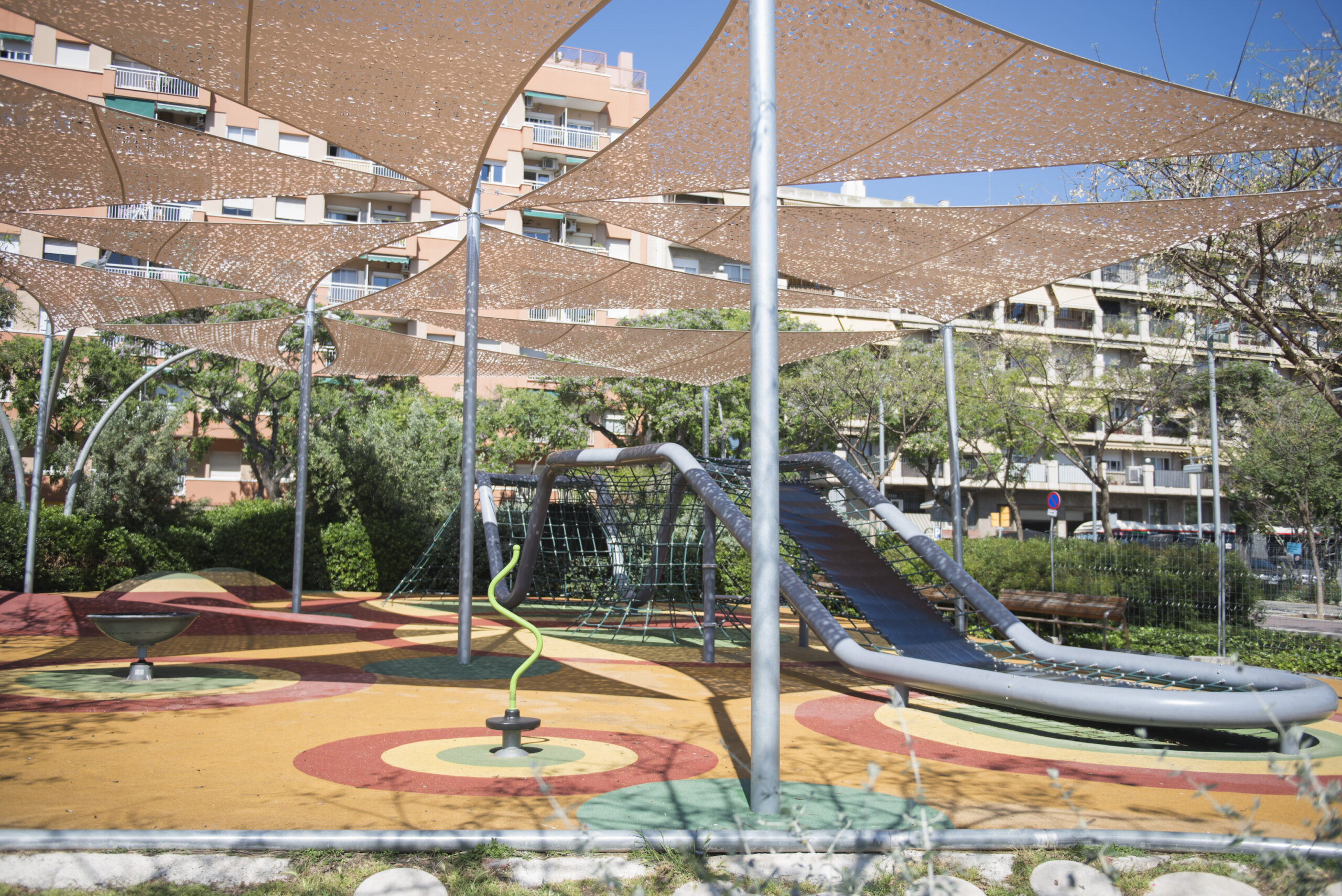 Tot i que de moment no s’ha anunciat cap gran espai públic del Clot o Camp de l’Arpa entre els que rebran tendals o pèrgoles aquest estiu, la previsió del consistori és ampliar progressivament el nombre d’intervencions fins a arribar a 194 espais ombrejats a tota la ciutat abans de finals del 2027.