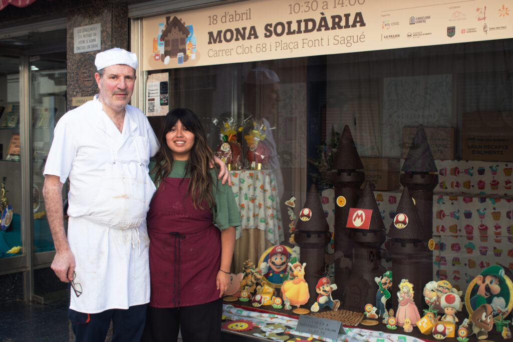 Cada Pasqua, l’aparador de la Pastisseria La Palma, al carrer del Clot, es transforma. Hi apareix una mona gegant de més de 30 quilos de xocolata que converteix la tradició de la Pasqua en un acte solidari. Aquest 18 d’abril se celebrarà “La Mona Solidària”, una recollida d’aliments disfressada de festa, amb gegants, diables i xocolata per a tothom. Enguany la temàtica és Mario Bros, i la jornada serà de 10 a 14 h. En Ramon Pérez, tercera generació al capdavant d’aquest negoci centenari del Clot, ens explica com va néixer la idea, com ha evolucionat al llarg dels anys i on es troba avui.